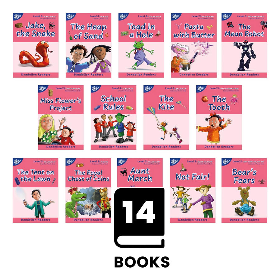 Level 3 ‘Jake the Snake’ consists of 14 different books. Each book introduces four to five alternative spellings for each vowel sound.