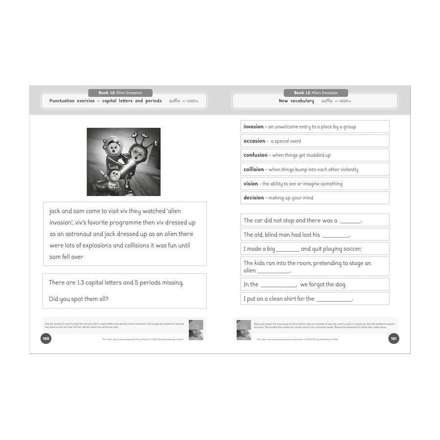 This workbook includes blending, segmenting, spelling, comprehension, and reading games. It also includes extension work at two-syllable level. (199 pages).
