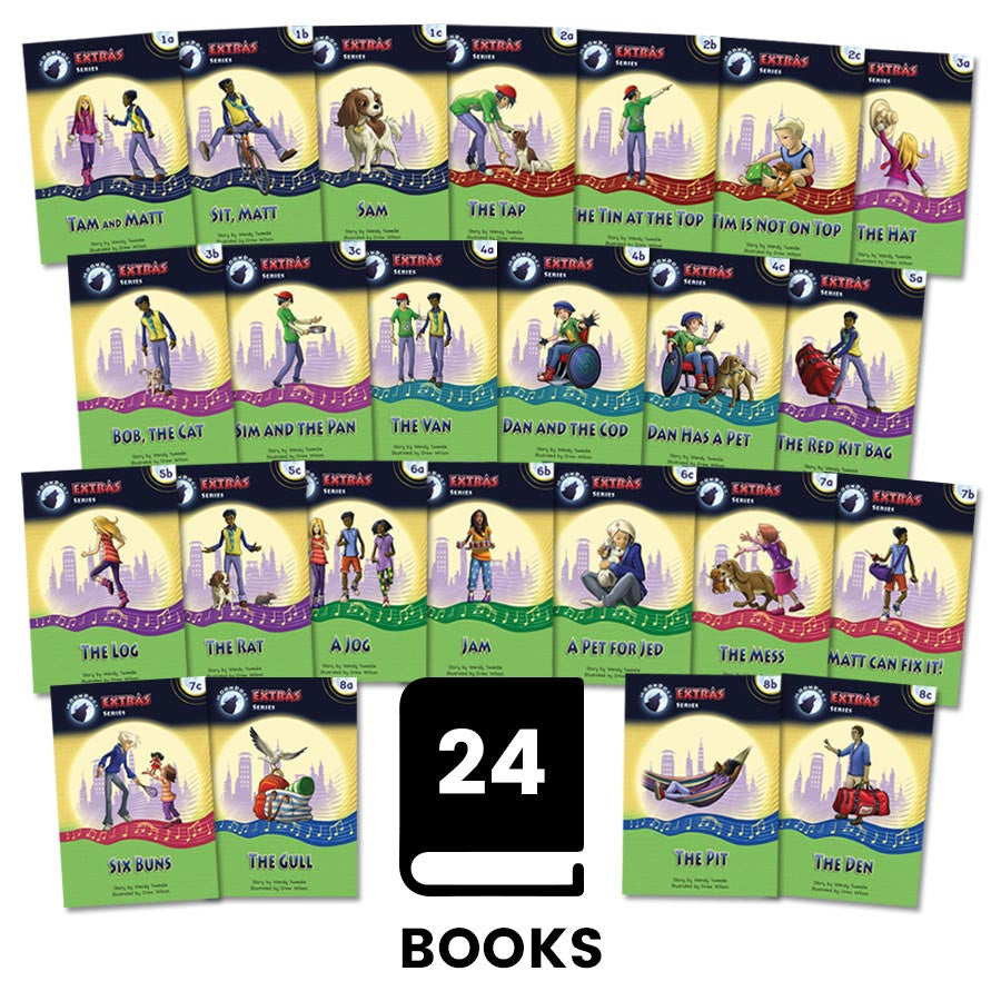 Moon Dogs EXTRAS are an exciting addition of 24 books that follow the same scope and sequence as Moon Dogs set 1. They have age-appropriate illustrations and storylines that engage and encourage the student to read on.
